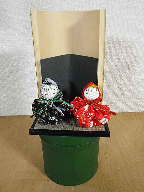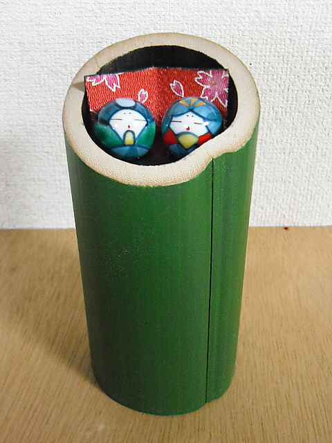 人形は友人が作ったもので、竹は大磯城山公園で頂いたものを私が加工しました。