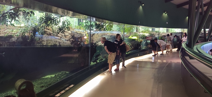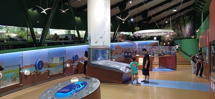 「流れのアクアリウム」や、魚に餌をやることのできる「屋外水槽」が人気です。 |