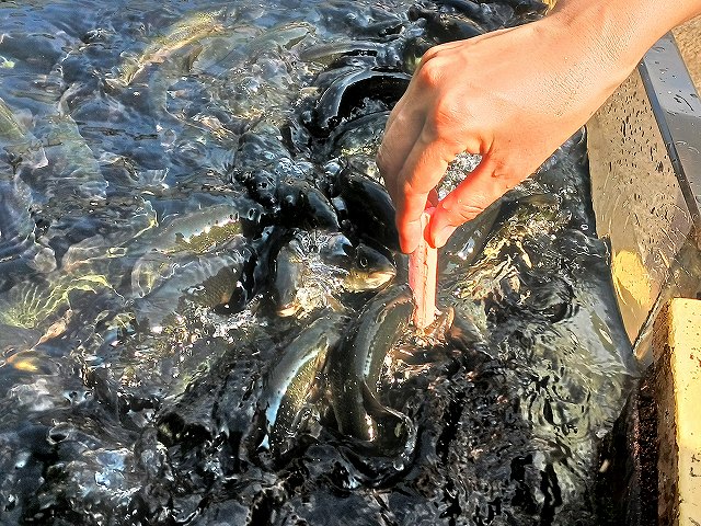 餌に群がる魚(屋外水槽) |