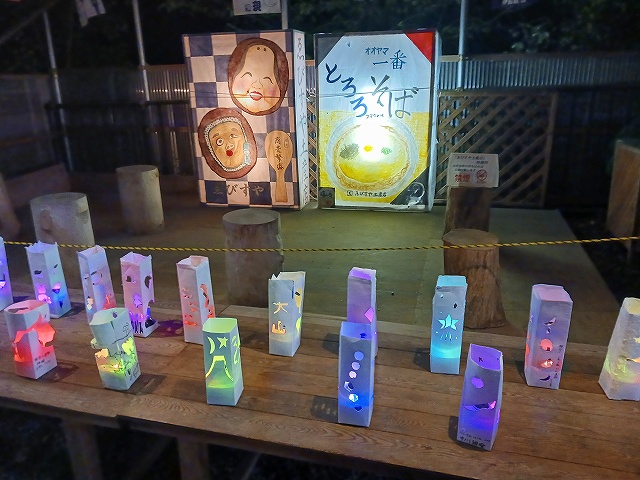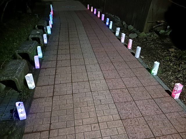参道脇の牛乳パックで作ったとうろう