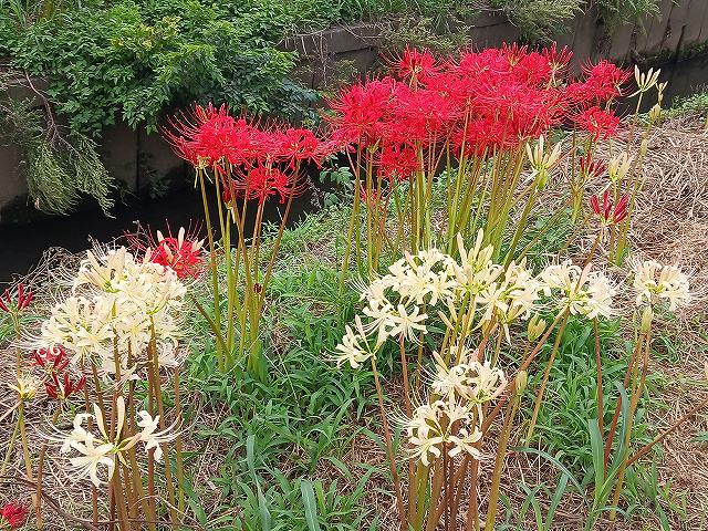 藤沢市・茅ケ崎市・寒川町の境を流れる小出川の周辺に彼岸花が咲きます。