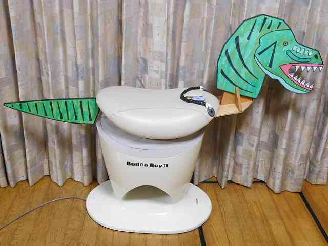 恐竜の頭としっぽを付けた「ロデオボーイ」