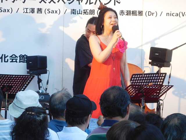 厚木大花火の日の夕方に、海老名市文化会館正面入り口前の特設ステージで開催