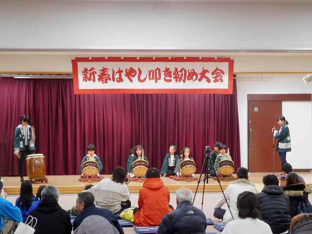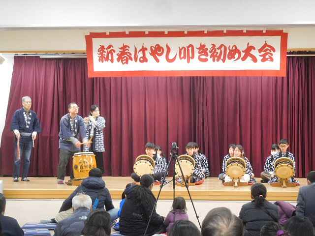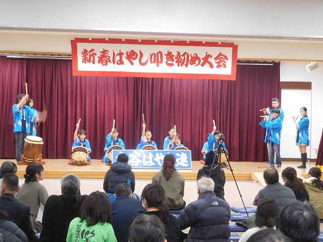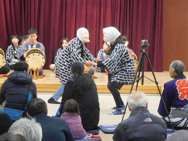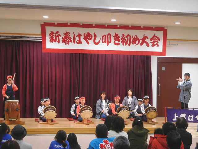 お囃子の楽器は、和太鼓(1)、締め太鼓(4〜5)、笛(1〜3)、ちゃんちき(1)です。