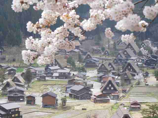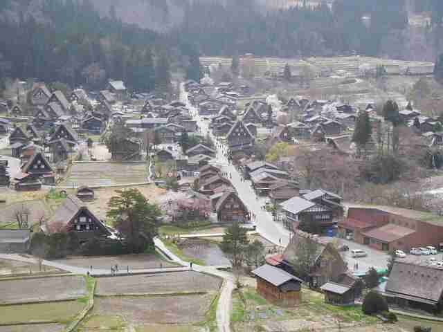 白川郷・荻町合掌造り集落 (岐阜県、4月13日))・・・