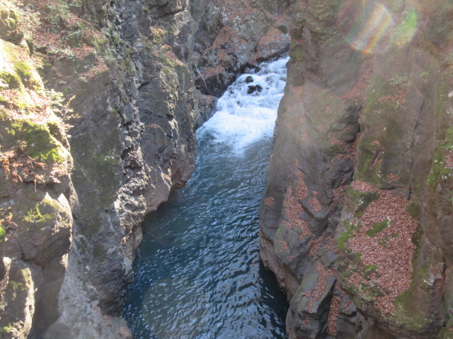 吾妻川に架かるふれあい大橋から新蓬莱までの約2.5kmにわたる渓谷です。